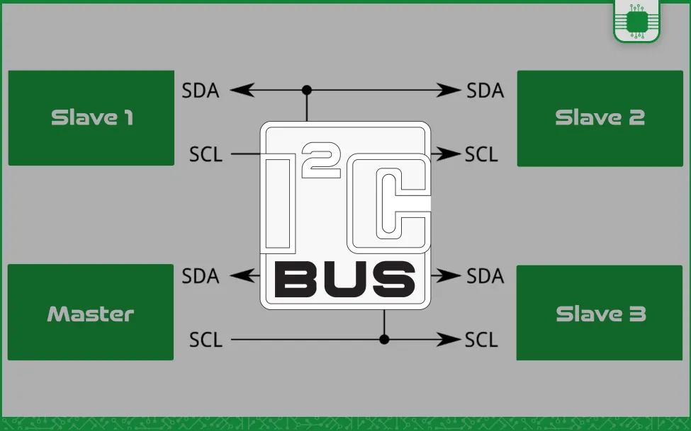 Slave: المان دیجیتالی است که با Master به تبادل داده می پردازد. Slave در باس I2C یک آدرس منحصر به فرد دارد و روی تبادل داده هیچ کنترلی ندارد.