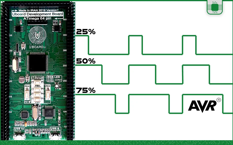 - ساخت PWM در AVR و میکروکنترلرهای دیگر، به صورت سخت افزاری و نرم افزاری امکان پذیر است.