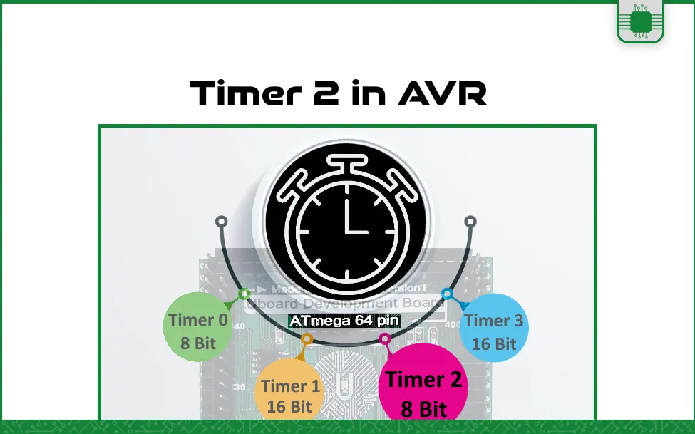 تایمر/کانتر 2 در میکروکنترلر ATmega128A، یک تایمر/کانتر 8 بیتی است. عملکرد این تایمر/کانتر شبیه تایمر صفر است. تایمر/کانتر صفر و 2، دو تفاوت دارند. اول این که تایمر/کانتر 2 هم کاربرد تایمر دارد و هم کاربرد کانتر، ولی تایمر/کانتر صفر تنها تایمر است. دوم این که تایمر/کانتر 2 عملکرد آسنکرون ندارد ولی تایمر صفر عملکرد آسنکرون دارد. با توجه به این دو تفاوت، تایمر/کانتر 2 پایه های TOSC برای کریستال ساعت ندارد. همچنین یک پایۀ T2 برای کاربرد کانتر نسبت به تایمر صفر اضافه دارد. در بعضی میکروکنترلرها مثل ATmega16، ATmega32 و…، تایمر 2 عملکرد آسنکرون دارد. در نوشتۀ «آموزش تایمر صفر در میکروکنترلر AVR (ATmega128A)» تایمر صفر در AVR را در میکروکنترلر ATmega128A بررسی کردیم. در این نوشته به بررسی تایمر/کانتر 2 این میکروکنترلر می پردازیم.